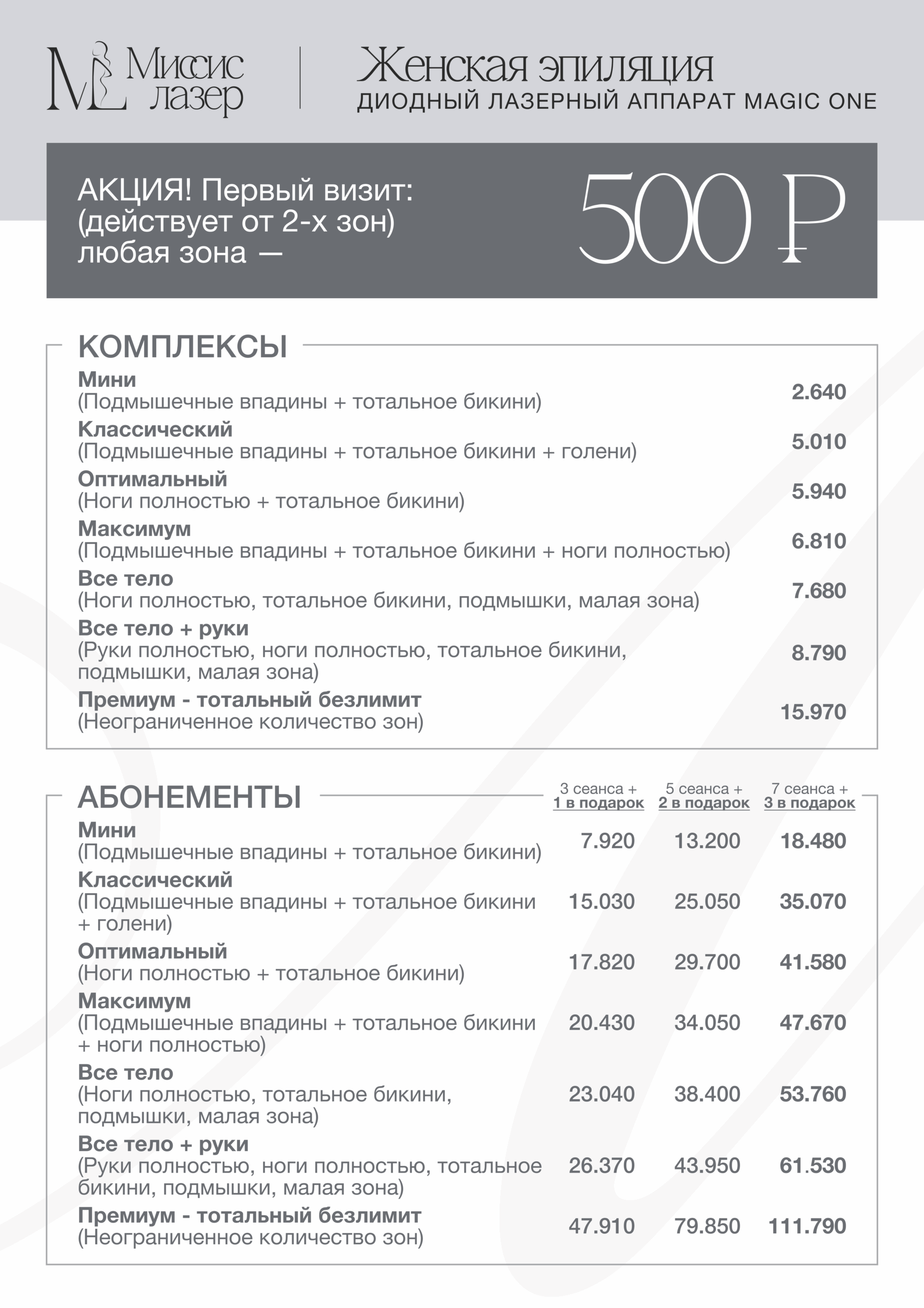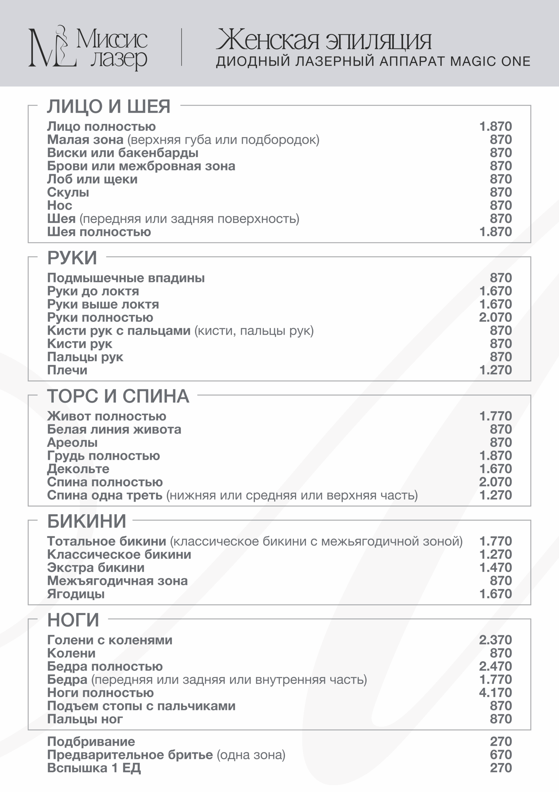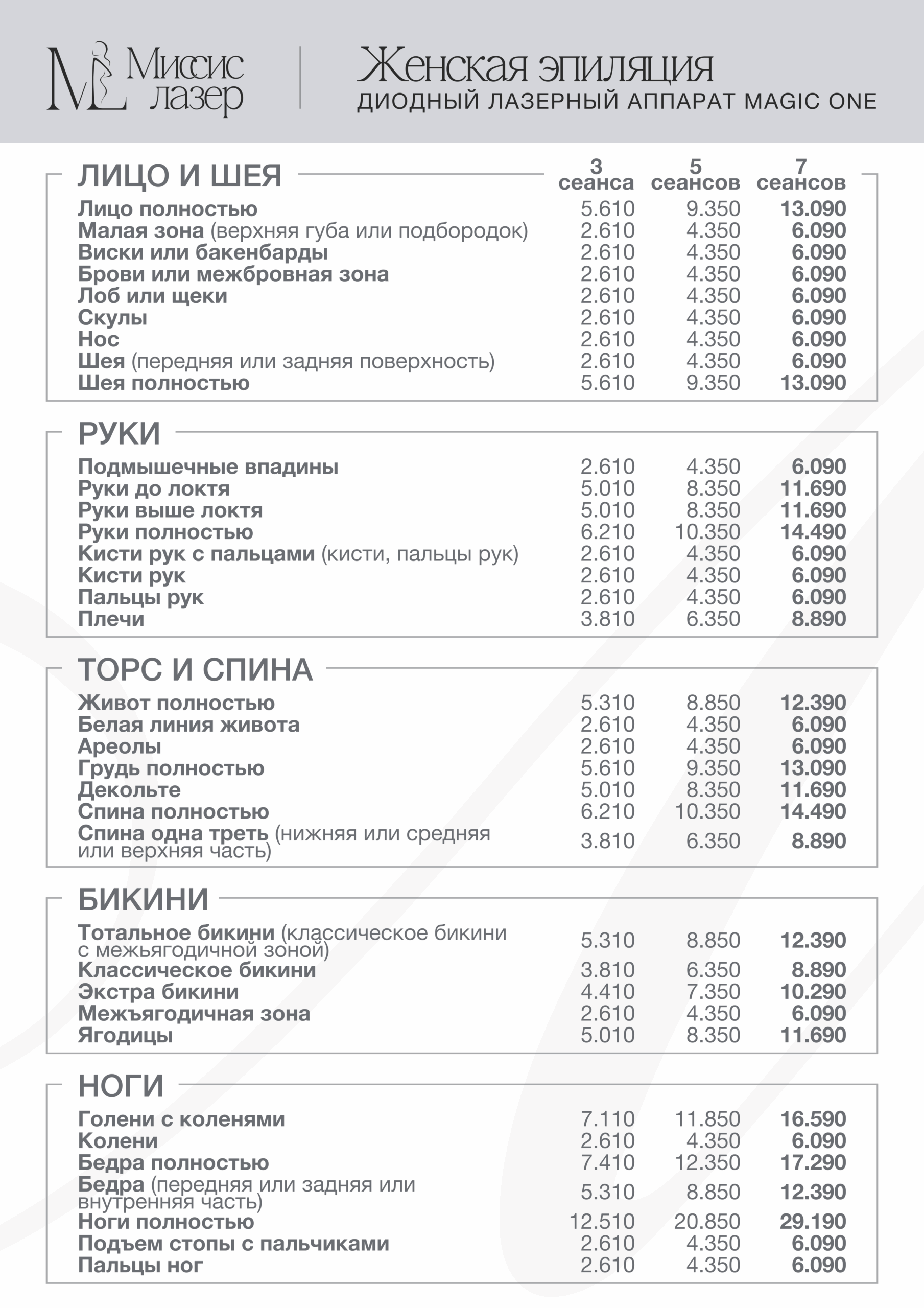Лазерная эпиляция в Санкт-Петербурге, цена в сети клиник Миссис Лазер